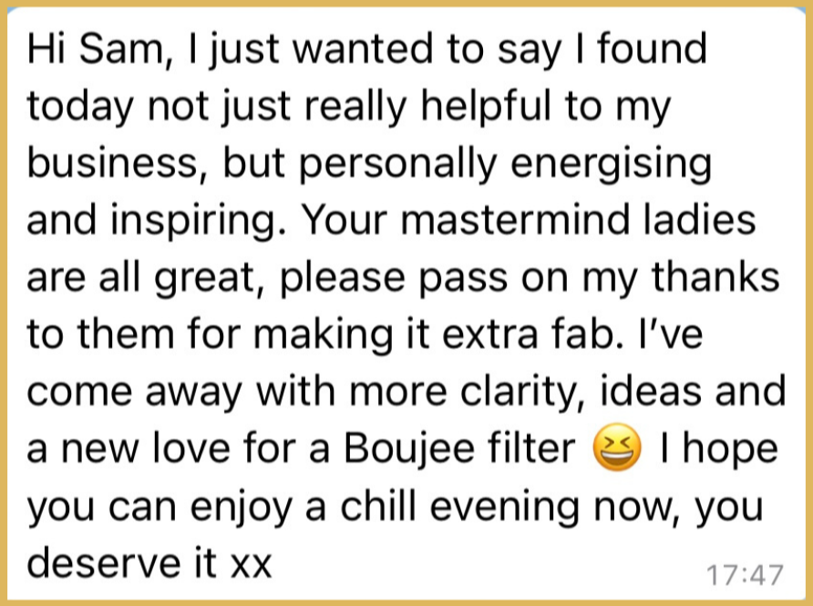 - A full day Masterminding with like-minded female entrepreneurs