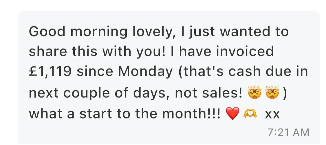 - Hit their first £10k cash months without working more hours